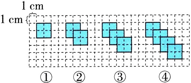 (2)发现:照这样叠放,每叠加一个大正方形,面积就增加( )平方厘米。