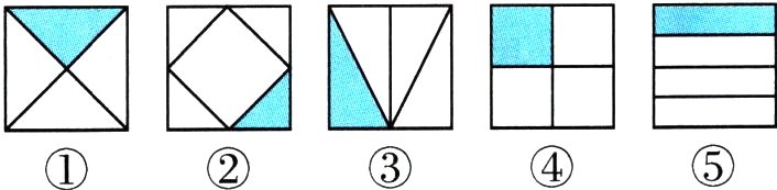 3. 如图是5个大小相同的正方形,正方形( )中涂色部分的面积与其他图形中涂色部分的面积不相等。(填序号)