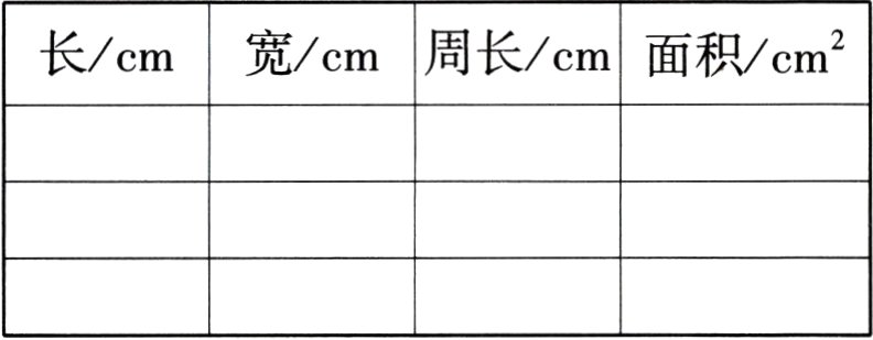 |长/cm|宽/cm|周长/cm|面积/cm²|