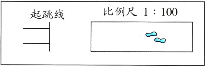 1. 如图是李楠跳远时的示意图。量一量,算一算,李楠的跳远成绩是多少米?(落地后离起跳线最近的距离即为跳远距离)