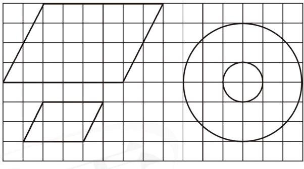 1. (1)按1:2的比画出平行四边形缩小后的图形。(2)按3:1的比(半径比)画出圆放大后的图形,并和原来的圆组成一个圆环。