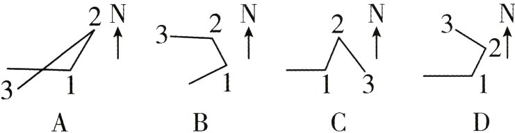 1. 警察追小偷,先向东行驶到1号目标,再向北偏东方向行驶到2号目标,最后向南偏西方向行驶到3号目标。图中可以表示警察追小偷路线的是( )。