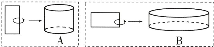 (2)一个长方形的长是5厘米,宽是2厘米。分别绕着这个长方形的长或宽旋转,可以得到两个不同的圆柱。圆柱A的底面周长是( )厘米,圆柱B的底面积是( )平方厘米。