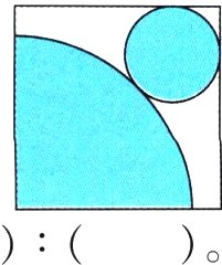6. 如图,在一张正方形纸片上剪下一个圆和一个扇形,恰好能围成一个圆锥形模型。若扇形的半径为a,圆的半径为b,则a:b=( ):( )