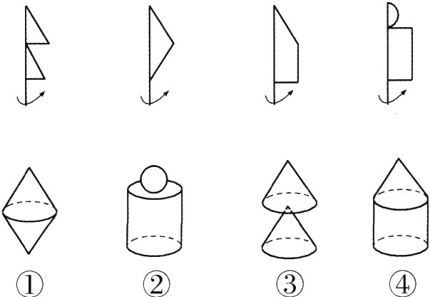 3. 将下列四个平面图形旋转,从左到右分别形成的立体图形应是( )。(填序号)