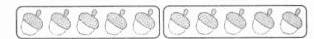 [4. 小松鼠要把10个橡果平均分后运回家。(先圈一圈,再填一填)