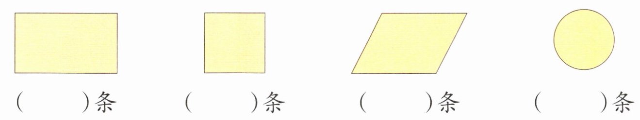 [4. 先想一想,再动手折一折,看下面的图形各有几条对称轴。