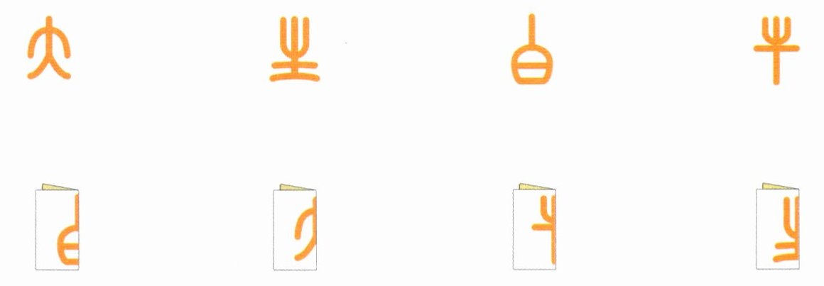 [3. [新情境·传统文化]小篆是我国古代的一种字体。下面第一行的小篆文字是从第二行哪张对折后的纸上剪下来的?连一连。