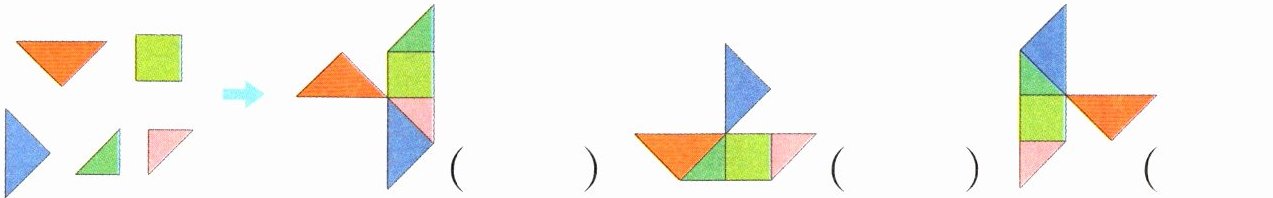2. 左边的图形经过平移,拼成了一条船,在那条船对应的括号里画“√”。