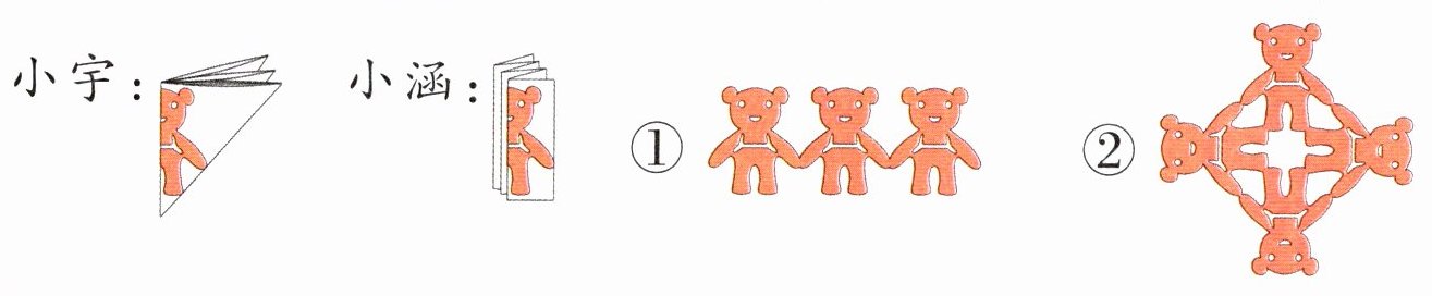 5. [新趋势·学科融合]美术课——漂亮的花边。下面是小宇和小涵的画法,小宇剪出的是( ),小涵剪出的是( )。