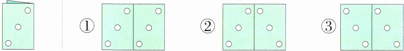 3. (易错题)将一张纸对折后剪去三个圆,展开后是( )。