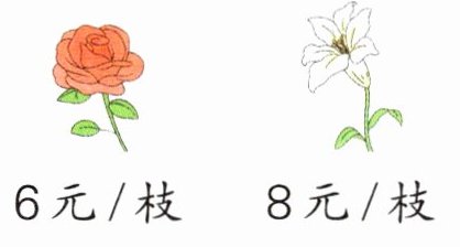 3. 小林买了9枝玫瑰花,姐姐买了9枝百合花,小林比姐姐少花了多少钱?(用两种方法解答)