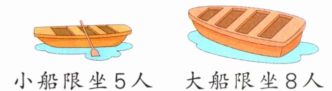 - (1)如果都租小船,至少要租几条? 小船限坐5人 大船限坐8人