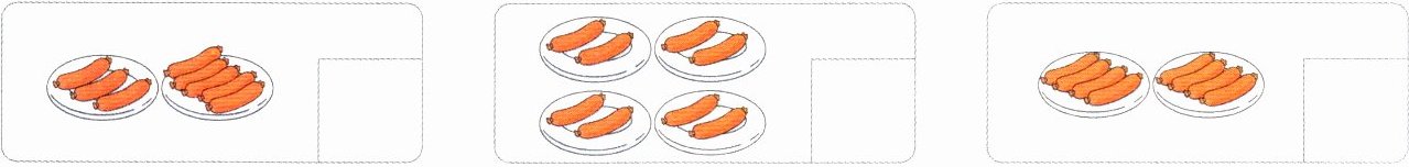 2. 把8根火腿肠平均分给2个小朋友,请在正确分法中画“√”,在错误分法中选择错误原因(填序号)。