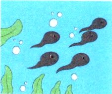 The tadpoles see a fish with a big head. She is swimming. The little tadpoles say happily, “Mum, Mum!” “Sorry, I’m not your mum. Your mum has four legs.”