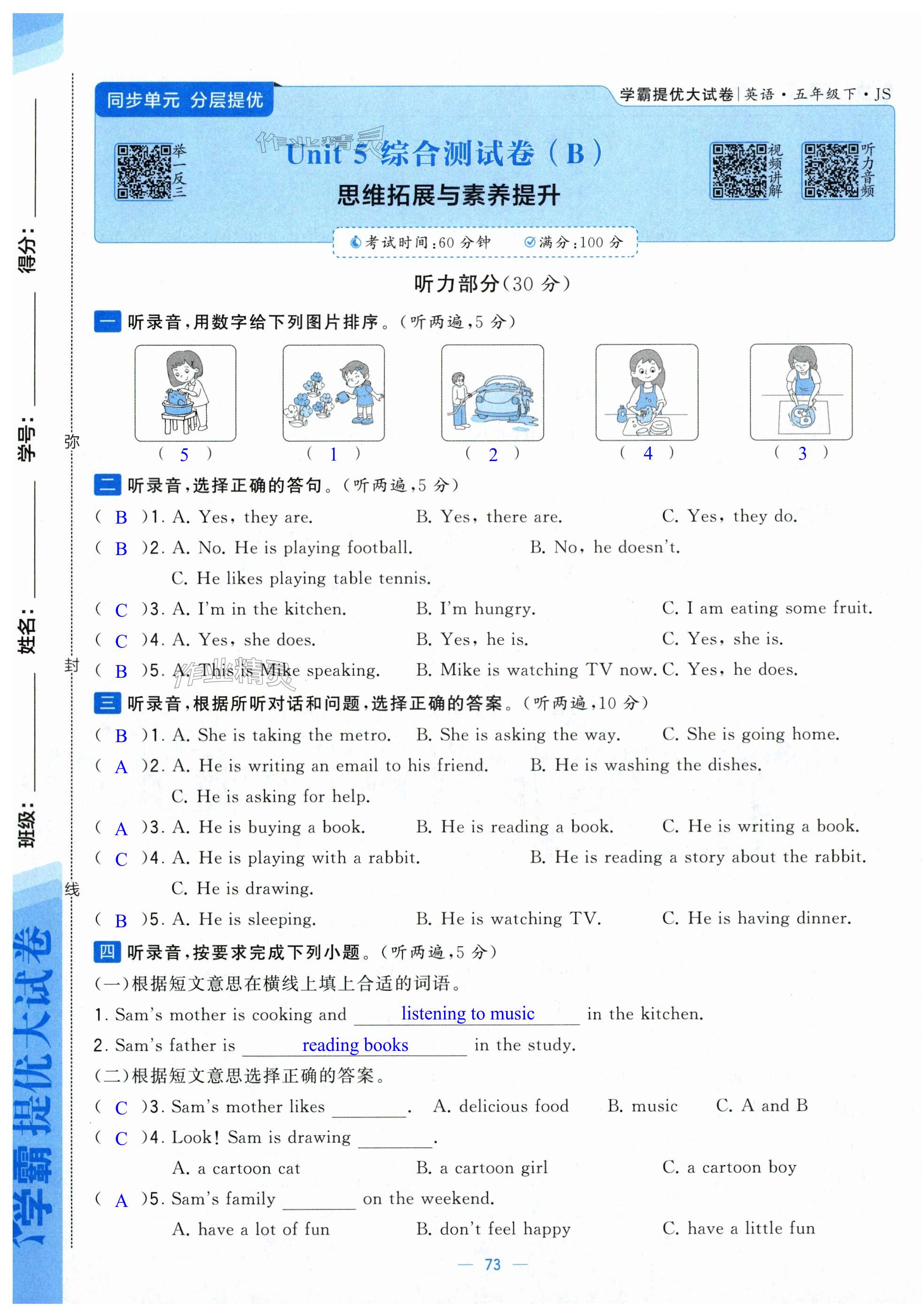 注:目前有些书本章节名称可能整理的还不是很完善,但都是按照顺序排列的,请同学们按照顺序仔细查找。练习册 2025年学霸提优大试卷五年级英语下册译林版 答案主要是用来给同学们做完题方便对答案用的,请勿直接抄袭。