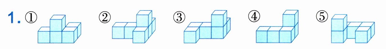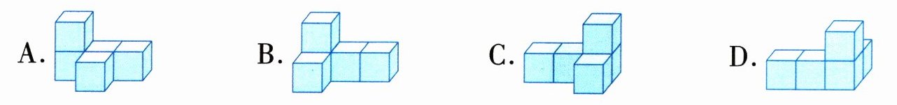 (1)下面物体中,从左面看到的图形与其他3个不同的是( )。