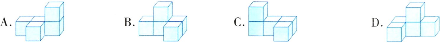 添上一个同样大的正方体,使这个物体从前面和左面看到的图形都不变,下面符合要求的是( )。