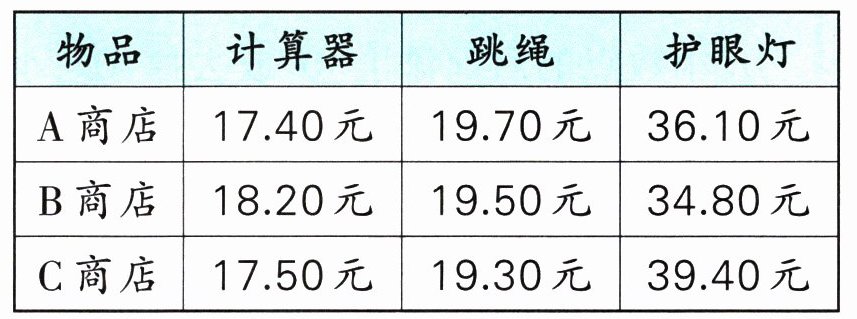 4. [教材改编]下面是三种物品在不同商店的价格。