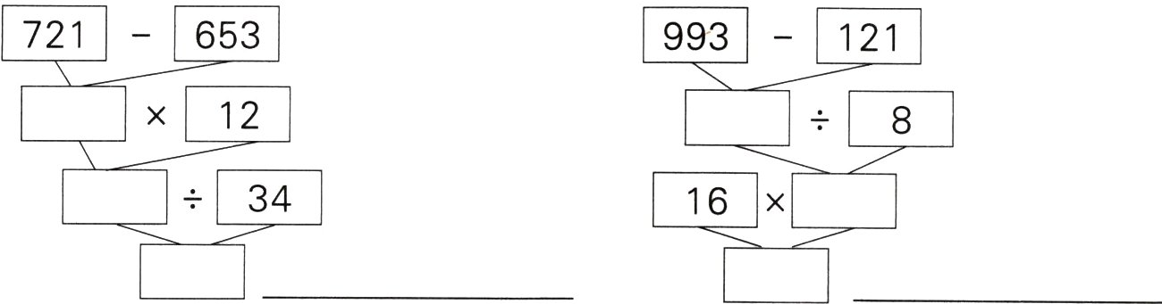解析:可以将错就错,根据得数倒推出方框里面的数。根据题意可知,□+100÷25 - 3=276,先算100÷25=4,所以□+4 - 3=276,□=275。再根据四则混合运算的运算顺序计算出(275+100)÷25 - 3=12。