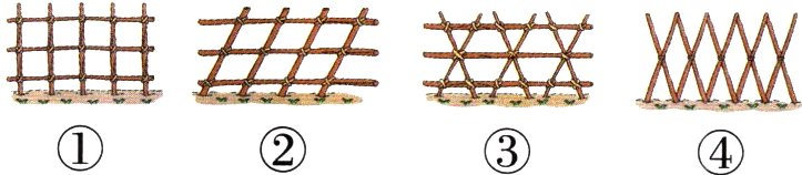 建议李奶奶选择方案③。因为三角形具有稳定性,四边形容易变形,只有方案③中的篱笆含有三角形。