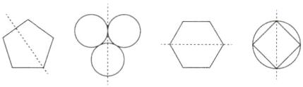 2. 下面图形各有几条对称轴?分别画出其中的一条。