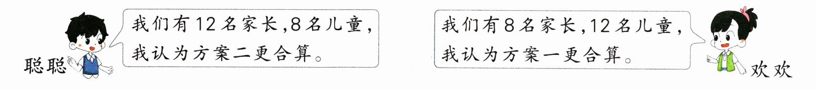 同样是20人,聪聪和欢欢却选择不同的方案,你支持谁的说法?列式说明理由。