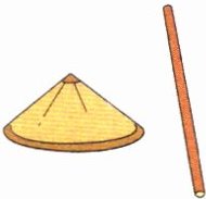 2. [新情境·传统文化]淘气想将古诗“孤舟蓑笠翁,独钓寒江雪”的情境模拟出来,右面是他制作的老翁的斗笠和船桨的握杆,观察并填一填。