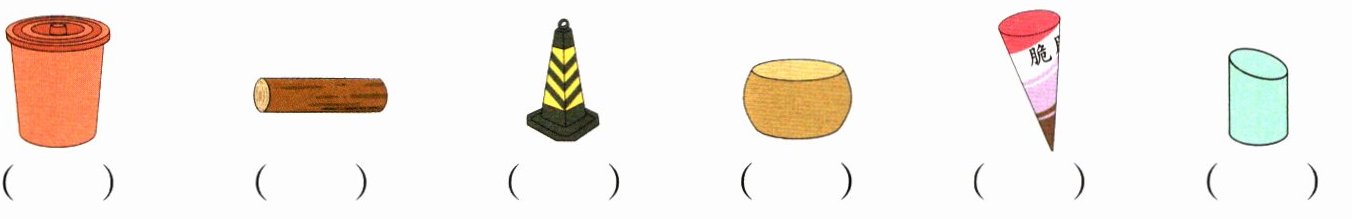 (2)把下列立体图形切开,切开后的面是圆形的是( ),是长方形的是( )。