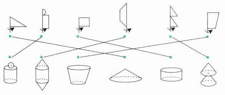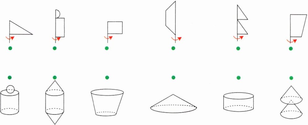 3. [教材改编]将下面第一行的图形旋转一周能形成什么图形?想一想,连一连。