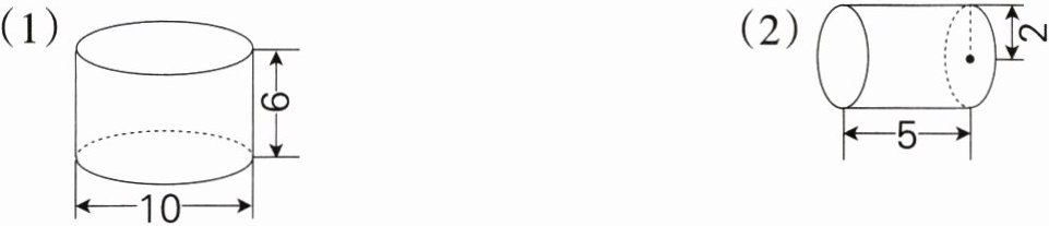 $3.14×10×6 + 3.14×(10÷2)^2×2 = 345.4(cm^2)$@@$3.14×2×2×5 + 3.14×2^2×2 = 87.92(cm^2)$