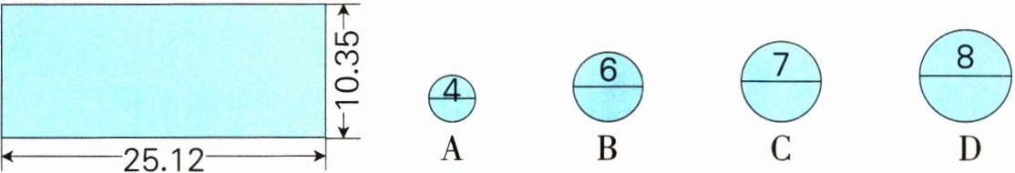 (1)用如下纸板围成一个无盖圆柱形笔筒,选择( )作底较合适。(单位:cm)