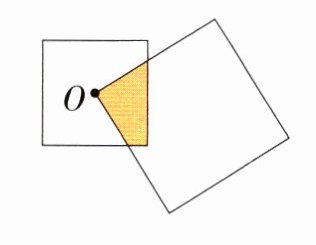 重叠部分的面积是小正方形的$\frac{1}{4}$,小正方形可以看作重叠部分绕点O逆时针旋转90°旋转三次得到的。(答案不唯一)