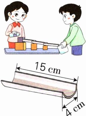 3. [新趋势·学科融合]连筒引水是利用斜面的原理把水从一处引到另一处。淘淘和月月用三段半圆柱形铁皮水槽搭一个较长的斜面,模拟连筒引水。每段水槽的形状如下,每段水槽用了多少平方厘米的铁皮?