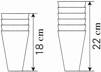 (2)(深圳期末真题)如图,4个纸杯叠起来高18 cm,6个纸杯叠起来高22 cm。1个纸杯的高度是( )cm。