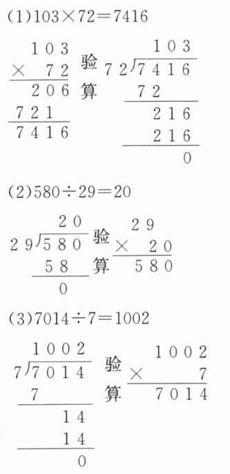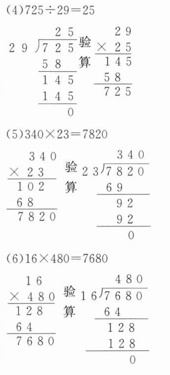 计算下面各题,并利用乘、除法各部分间的关系进行验算。