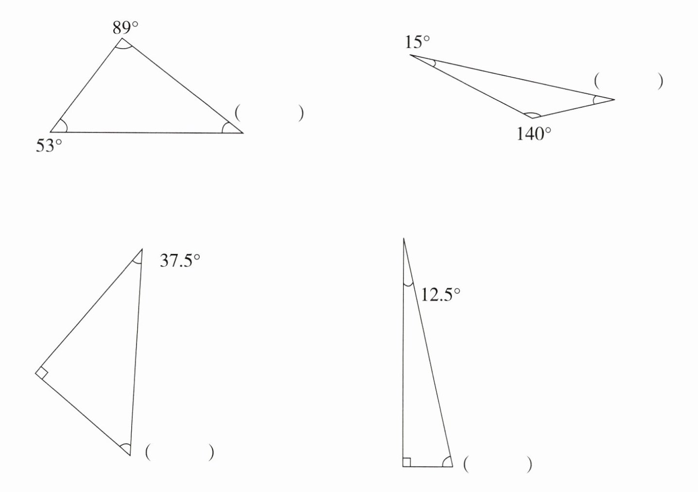 90° - 37.5° = 52.5° 90° - 12.5° = 77.5°