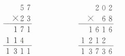 0.57×0.23 = 0.1311 6.8×2.02 = 13.736