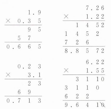 7.26×1.22= 0.23×3.1= 6.22×1.55=