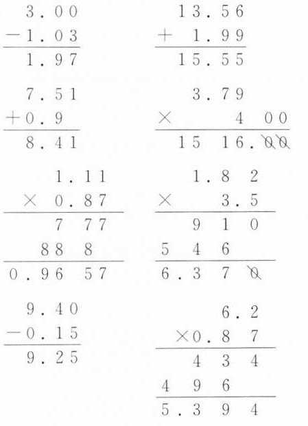 400×3.79= 0.87×1.11= 3.5×1.82=
