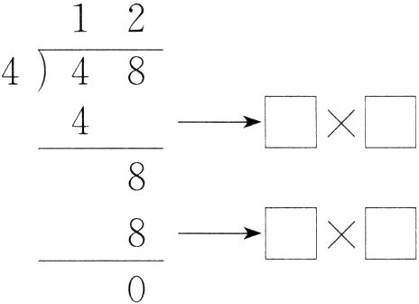 4. 在笔算48÷4时,箭头左侧这一步实际计算的是什么?对应填一填。