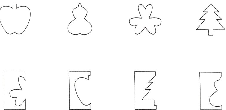 4. 下面的图形是从哪张纸上剪下来的?连一连。