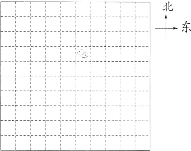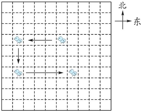 先向西平移4格,再向南平移3格,再向东平移5格,最后 停在哪格?画出行走路线。