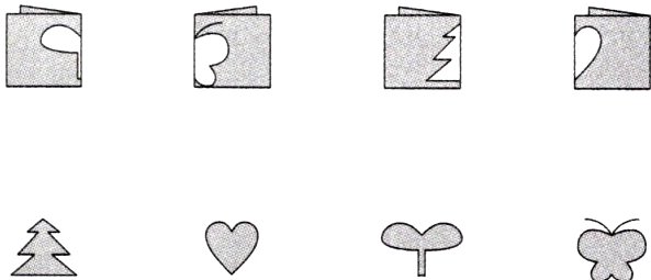 [提示]找到上面图形的对称轴,对折后看其中的一半,与下面哪个图形相同就连哪个。
