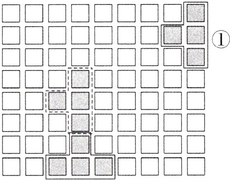 [提示]拼成正方形,①号三角板要向右平移,使D点平移到C点,平移2格。
