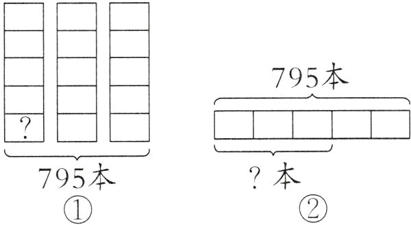 (1)A [提示]①表示795÷5÷3,②表示795÷5×3,所以选A。