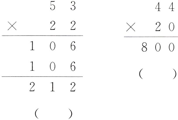 $44\times20\begin{array}{r}44\\\times20\\\hline800\end{array}$ ( )