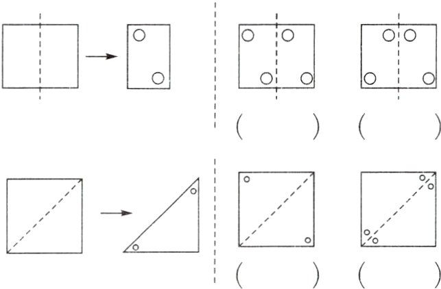 [提示]折叠剪孔后,再展开是以折痕所在直线为对称轴的轴对称图形。