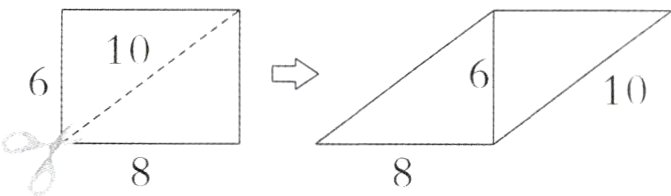 (4)将一个长8厘米、宽6厘米的长方形沿虚线剪开,拼成一个四边形(如下图)。(单位:厘米)
