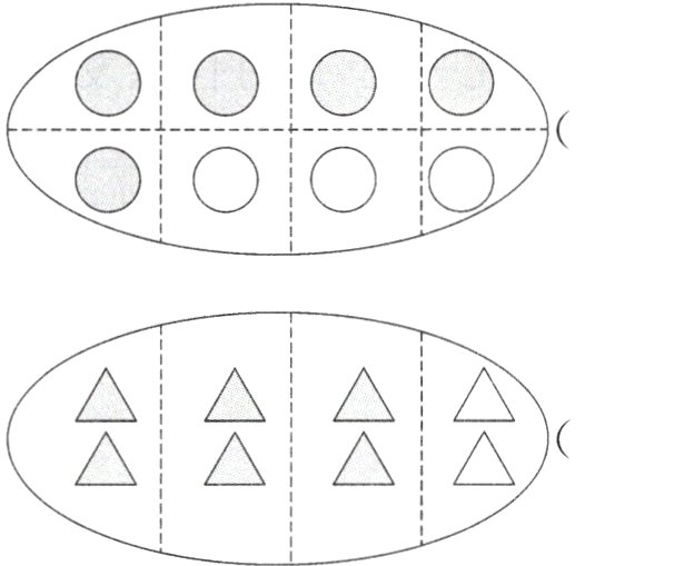 $\frac{5}{8}$ $\frac{3}{4}$ [提示]图形总份数是分母,涂色份数是分子。